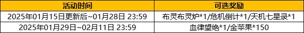 a.活动时间:2025.01.15更新后---1月29日 23:59;