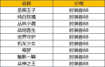 b.新增返场时装如下:
